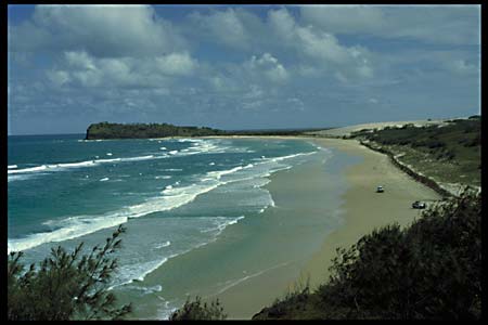 Fraser Island is with 120 km by 15 km the world largest foliated sand bar. The only way to travel over the sandy tracks or the beach highway is by 4 WD.