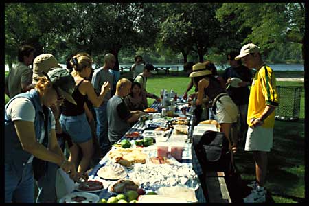 Aside from our lessons, the school organized lots of social activities. Here we are picnicking on Toronto Island. Everybody had prepared dishes from their home country.