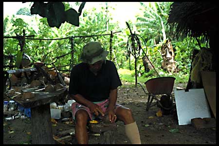 Not far from Paradise Cove was a simple garden coffee run by an Austrian woman and her native husband. While sitting there having a fresh fruit salad I watched the husband making a dancer costume.