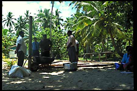 We got three meals a day, which were served in a common hut. During my stay, a new common hut was built. The priest came to Caqelai for the special event of laying the foundation-wood.