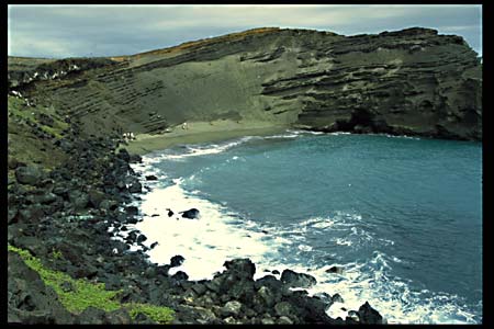 After a one and a half hour hike from Ka Lae, the southern point of Big Island, we arrived at Papakolea, which is famous for its green sand.