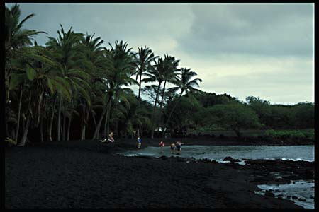 Punualu'u is well known for its black sand. A sign warns you or you will be fined not to take any sand. Instead, you can go snorkeling and if you are lucky, you will see some seaturtles.