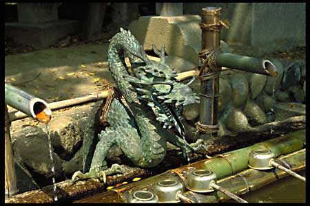 Just before you enter a shrine you should purify yourself and wash your hands and mouth. For that you'll find water basin, which are often beatiful decorated.